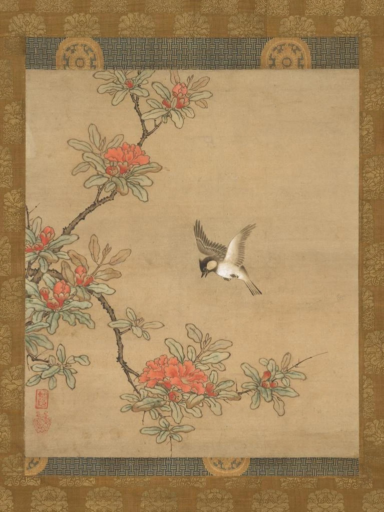 Granaattiomenan kukkainen sinitintti - Kanō Yukinobu