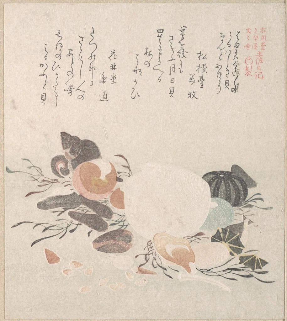 Monipuolisia simpukoita ja merileviä - Kubo Shunman