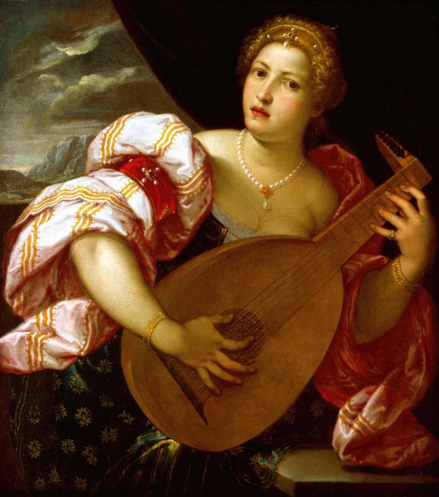 Nuori nainen soittamassa lutua - Parrasio Micheli