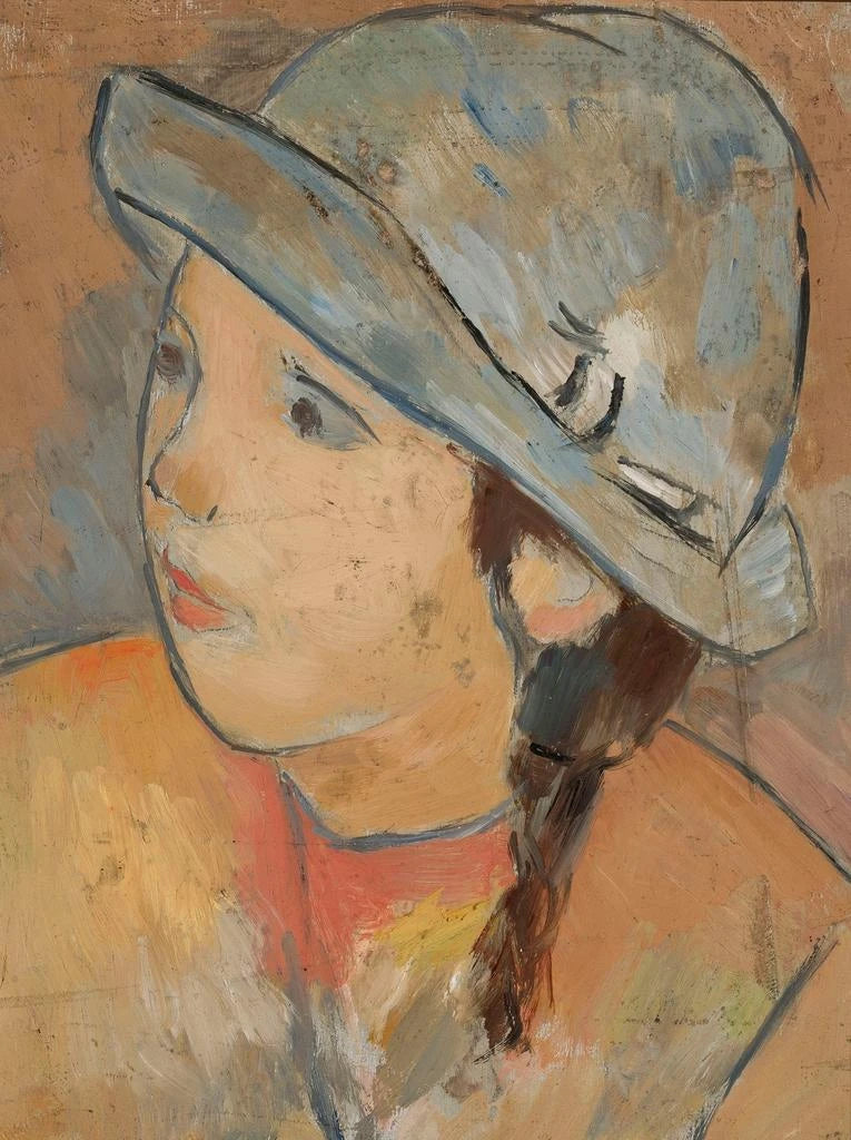 Tytön pää sinisellä hatulla - Tadeusz Makowski