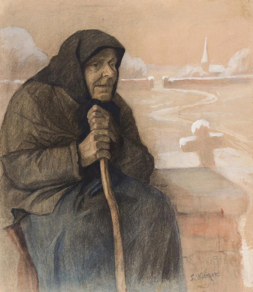 Vanheneva nainen kepin kanssa - Lilly Walther