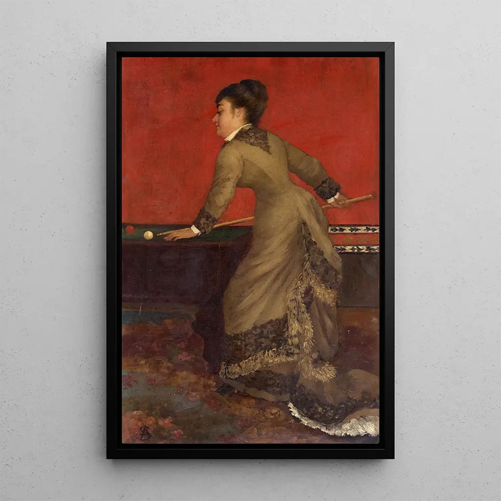 Alfred Stevens, belgialainen 1800-luvun taiteilija, tunnetaan kyvystään kuvata porvarillista elämää ja genrekohtauksia. Vaikuttuneena realismista ja impressionismista, hän kehitti ainutlaatuisen tyylin, joka korostaa naisten ja hienostuneiden sisätilojen kauneutta. Stevens oli aktiivinen Pariisissa, missä hän oli tekemisissä monien aikansa taiteilijoiden, kuten Manetin ja Degasin, kanssa. Hänen työnsä on saanut kiitosta kyvystään vangita arkipäivän elämän olemus ja lisätä siihen ripaus glamouria. "Tyylikäs biljardipöydällä" todistaa hänen taitonsa yhdistää tekniikka ja tunne, tehden hänestä merkittävän hahmon aikakaudellaan.