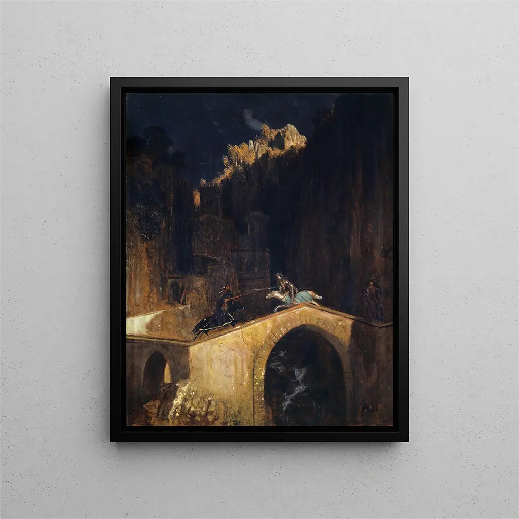 Fasinaation kiehtovassa taiteen historian maailmassa jotkut teokset erottuvat kyvyllään vangita kollektiivinen mielikuvitus ja herättää syviä tunteita. "Le combat sur le pont" Arnold Böcklinilta on yksi näistä luomuksista, jotka ylittävät pelkän maalauksen kehyksen ja muuttuvat todelliseksi visuaaliseksi kokemukseksi. Tämä teos, joka upottaa katsojan intensiivisen konfliktin kohtaukseen, on täydellinen esimerkki siitä, kuinka taide voi heijastaa ihmismielen myrskyjä. Esitystapa, jossa taistelu sillalla symboloi siirtymää ja kohtaamista, kannustaa pohdintaan olemassaolon dualiteetista ja ihmisyyden ehdottomista kamppailuista.