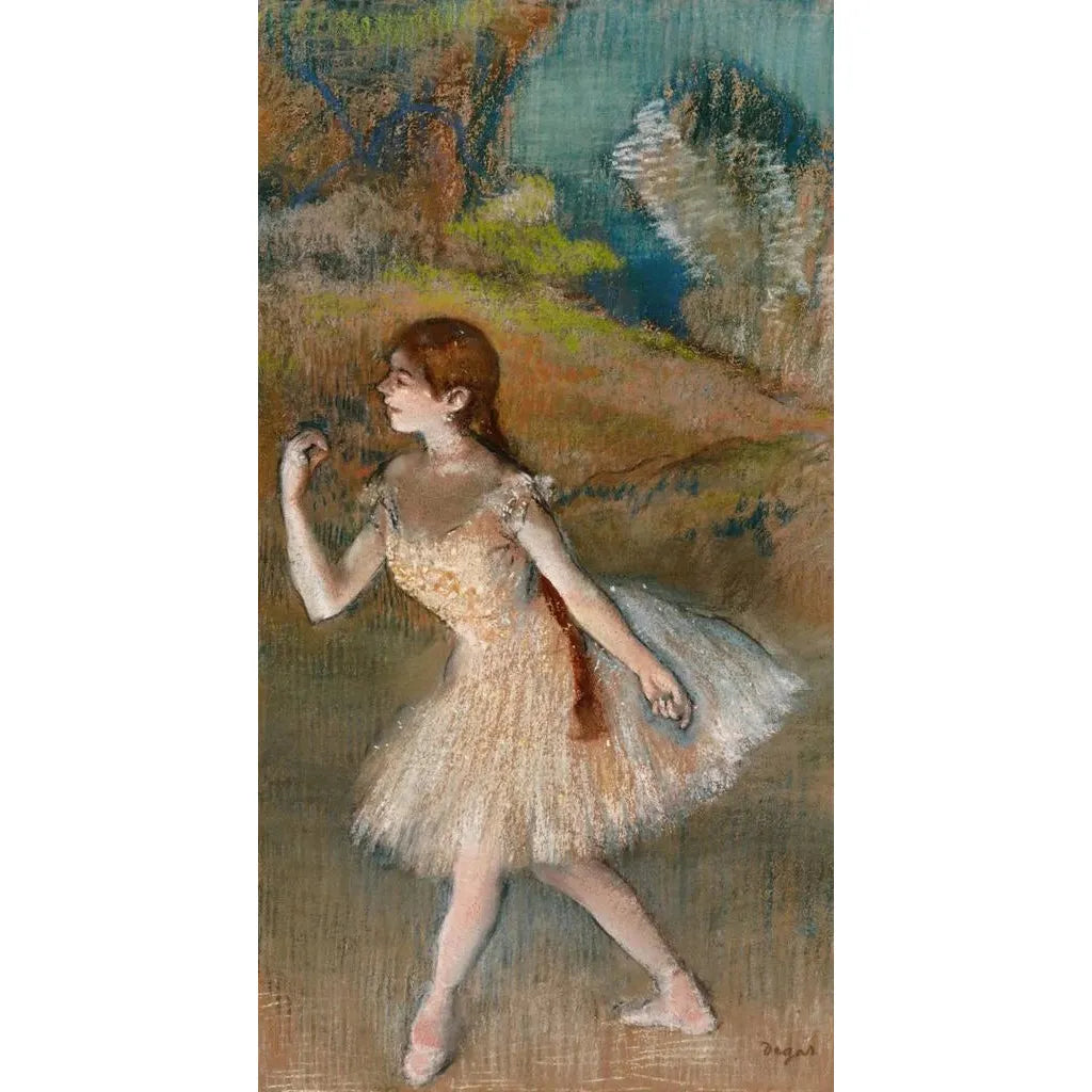 Taidegrafiikka "Danseuse" Edgar Degasin teoksesta vangitsee tanssin olemuksen, hetkessä pysähtyneen ohikiitävän taiteen. Kankaalle on maalattu lämpimän sävyisiä värejä ja hienovaraisia vivahteita, jotka herättävät baletin keveyden ja eleganssin. Degas, joka hallitsee varjojen ja valon leikkiä, onnistuu luomaan intiimin ilmapiirin, jossa melkein tuntee tanssijan hengenvedon. Jokainen sivellinvedos tuntuu värähtelevän musiikin rytmissä, tehden tästä teoksesta sekä dynaamisen että emotionaalisen, todellisen kunnianosoituksen liikkeen kauneudelle.