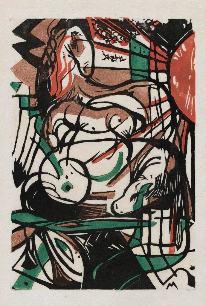 Franz Marc, ekspressionismin keskeinen hahmo, merkitsi 1900-luvun alkua rohkeilla luonnon kuvauksillaan. Hän syntyi vuonna 1880 ja vaikutteita saivat muun muassa Vincent van Gogh ja Paul Gauguin, jotka molemmat juhlivat väriä ja muotoa. Marc oli perustamassa kuuluisaa Der Blaue Reiter -ryhmää, joka korosti taiteen merkitystä henkisen ilmaisun keinona. Hänen uransa, vaikka traagisesti lyhyt ensimmäisen maailmansodan vuoksi, jätti pysyvän perinnön, tehden hänestä yhden aikansa arvostetuimmista taiteilijoista. La Naissance des chevaux kuvaa täydellisesti hänen ainutlaatuista näkemystään ja sitoutumistaan luontoon.