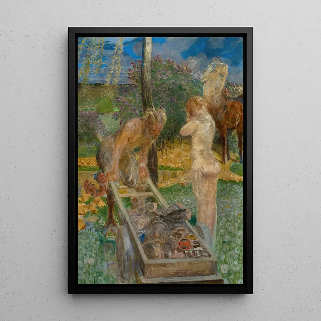 Funérailles d'un apprenti peintre : un hommage poignant à la créativité éphémère. Dans cette œuvre saisissante, Jacek Malczewski capture l'essence tragique de la vie d'un jeune artiste. Les couleurs sombres et les nuances de terre évoquent une atmosphère mélancolique, tandis que la composition complexe, mêlant figures humaines et éléments symboliques, invite à une réflexion profonde sur la mortalité et l'art. Les personnages, figés dans une procession funèbre, semblent porter le poids des rêves inachevés de l'apprenti peintre. Cette taidegrafiikka, riche en détails, évoque une émotion brute et une beauté poignante, faisant écho à la fragilité de l'existence humaine. Jacek Malczewski : figure emblématique du symbolisme polonais. Né en 1854, Jacek Malczewski est un artiste majeur du mouvement symboliste en Pologne. Influencé par les courants artistiques européens, il développe un style unique, mêlant mythologie, folklore et introspection personnelle. Sa période de création s'étend à la fin du XIXe siècle et au début du XXe siècle, un temps de bouleversements politiques et sociaux en Pologne. Malczewski utilise son art pour explorer des thèmes profonds tels que l'identité, la mort et la quête de sens, faisant de lui un pionnier de l'expression artistique en Pologne. Ses œuvres, dont "Funérailles d'un apprenti peintre", témoignent de son engagement envers la culture et l'histoire polonaise. Une acquisition décorative aux multiples atouts. La taidegrafiikka de "Funérailles d'un apprenti peintre" est un choix idéal pour enrichir votre intérieur, que ce soit dans un salon, un bureau ou une chambre. Sa qualité d'impression et sa fidélité à l'œuvre originale garantissent un attrait esthétique indéniable. Ce tableau, avec ses thèmes profonds et son atmosphère évocatrice, suscite la curiosité et la contemplation, devenant ainsi un point focal dans n'importe quel espace. En intégrant cette toile dans votre décoration, vous apportez une touche d'élégance et de réflexion, tout en célébrant l'héritage artistique d'un maître du symbolisme.