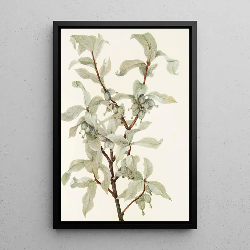 Taidegrafiikka Fruit de chalef argenté Elaeagnus commutata johdattaa meidät maailmaan, jossa muotojen hienostuneisuus ja värien rikkaus kietoutuvat harmonisesti yhteen. Mary Vaux Walcott, poikkeuksellisen lahjakas, vangitsee tämän kasvin kauneuden paljastamalla hopeanhohtoisia sävyjä, jotka kimaltelevat valossa. Yksinkertainen mutta hienostunut koostumus luo rauhan ja mietiskelyn tunnelman. Jokainen yksityiskohta, lehdistä hedelmiin, on huolellisesti toteutettu, mikä osoittaa luonnon huomioimisen. Tämä taidegrafiikka, todellinen kunnianosoitus kasvistolle, kutsuu visuaaliseen tutkimusmatkaan, joka hurmaa mielen.