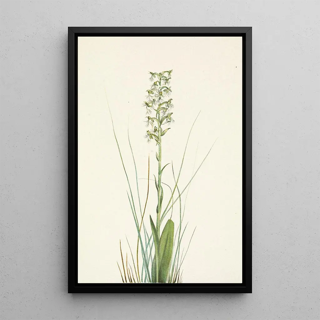 Taidegrafiikka Orchis lacéré kutsuu meitä löytämään tämän ikonisen kasvin raikkaan ja herkkäluontoisen kauneuden. Sen rikkaat violetin ja valkoisen sävyt vangitsevat Mary Vaux Walcottin teoksessa luonnon villin olemuksen. Piirrosten tarkkuus ja muotojen sulavuus osoittavat poikkeuksellista akvarellin hallintaa, luoden rauhoittavan ja kiehtovan ilmapiirin. Jokainen kukka näyttää hehkuvan valossa, tarjoten lähes runollisen näkymän ympäröivään kasvilajistoon.
