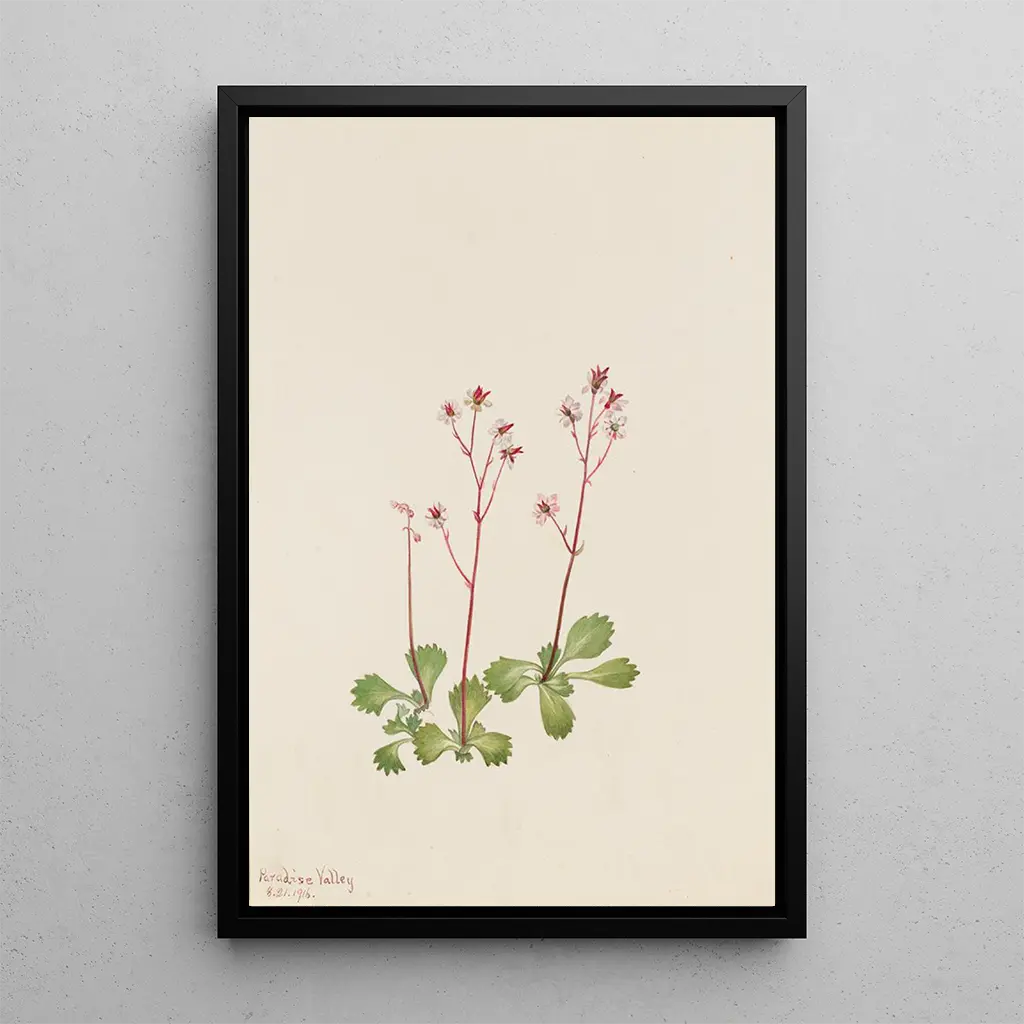 Le "Saxifrage à tige rouge" de Mary Vaux Walcott est une œuvre vibrante qui met en lumière la beauté des plantes de montagne. Les teintes éclatantes de rouge et de vert s’entrelacent pour créer un tableau vivant, où chaque détail est soigneusement rendu. La technique de l’aquarelle, utilisée avec maestria, confère à cette œuvre une légèreté et une transparence qui rappellent la fragilité des fleurs alpines. L’atmosphère qui émane de cette toile est à la fois dynamique et sereine, invitant à une exploration des paysages naturels.