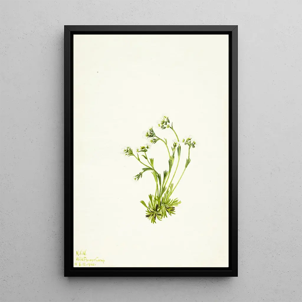 La taidegrafiikka Saxifrage Saxifraga caespitosa johdattaa meidät herkkään kukkivaan maailmaan, jossa jokainen yksityiskohta on huolellisesti huomioitu. Vihreät ja valkoiset sävyt sulautuvat harmonisesti, viitaten vuorten raikkauteen. Vesiväritekniikka, jota käyttää Mary Vaux Walcott, antaa tälle teokselle keveyttä ja läpinäkyvyyttä, jotka vangitsevat valon ainutlaatuisella tavalla. Tämän kankaan välittämä tunnelma on rauhoittava, kutsuen katsojaa ihailemaan luonnon ihmeitä. Jokainen terälehti tuntuu värähtelevän tuulen huminassa, luoden intiimin yhteyden katsojan ja luonnon välillä.