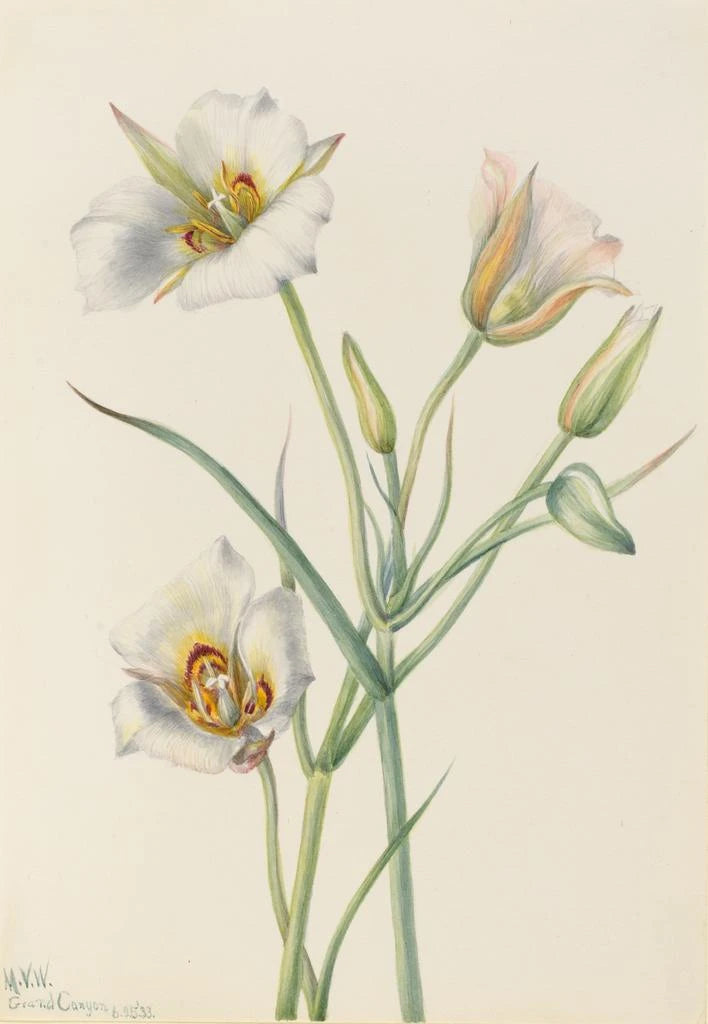 Mary Vaux Walcott, joka oli aktiivinen 1900-luvun alussa, tunnetaan amerikkalaisen kasvitieteen taiteen edistäjänä. Häntä vaikutti naturalististen liikkeiden ja luonnon säilyttämisen kasvava merkitys, ja hän osasi yhdistää tieteellisen tarkkuuden ja taiteellisen herkkyyden. Hänen teoksensa, mukaan lukien Ségo Lily Calochortus nuttallii -taidegrafiikka, todistavat ajasta, jolloin luontoa juhlistettiin taiteen kautta. Walcott osallistui myös retkille Yhdysvaltain länteen, mikä antoi hänelle mahdollisuuden tallentaa harvinaisia lajeja ja herättää yleisön tietoisuutta paikallisen kasviston kauneudesta.