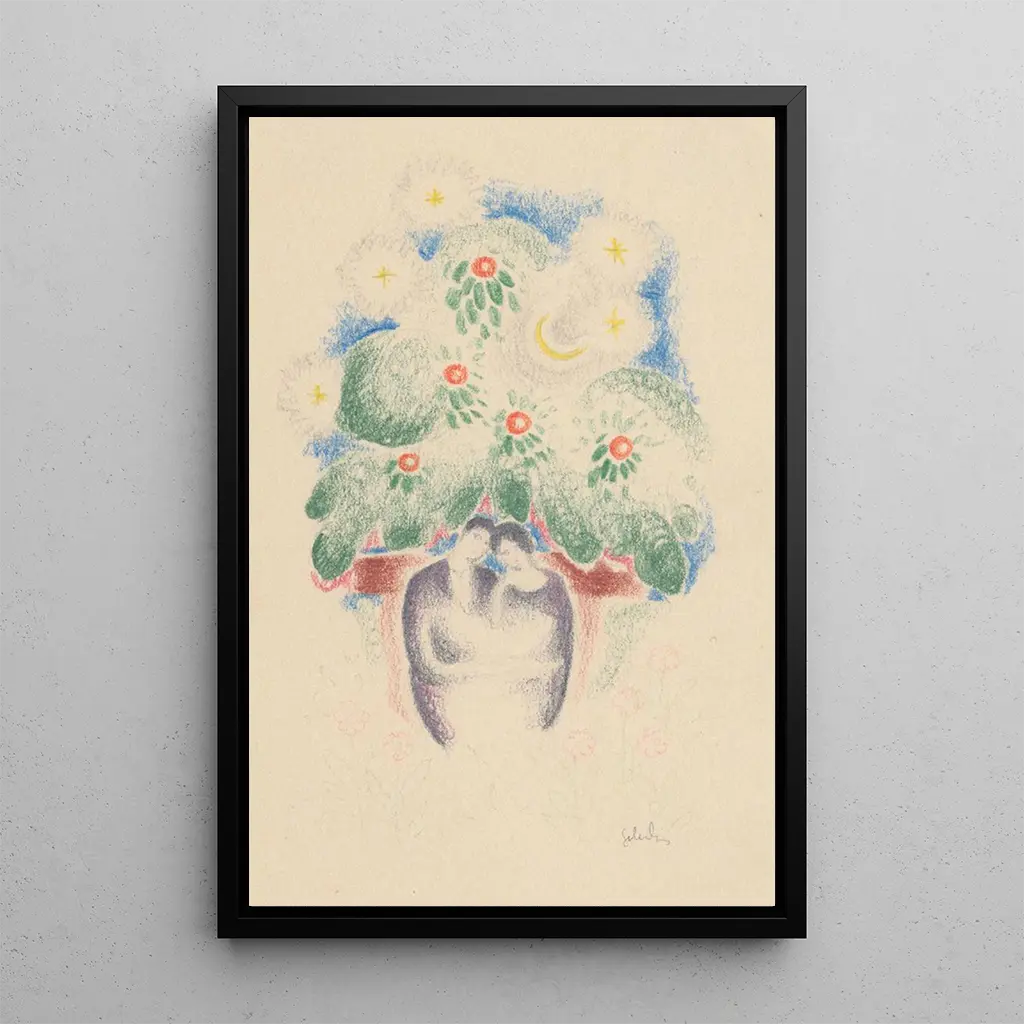 Dans cette œuvre délicate, Mikuláš Galanda capture un moment de douceur entre deux amoureux assis sur un banc. Les couleurs chaudes et les nuances pastel créent une atmosphère romantique, tandis que la lumière douce semble envelopper les personnages d'une aura de sérénité. La composition, à la fois simple et évocatrice, invite le spectateur à plonger dans l’intimité de cette scène, où le temps semble suspendu. Les détails minutieux des expressions et des postures témoignent d'un talent exceptionnel pour saisir l'émotion humaine, rendant cette reproduction du tableau Amoureux sur un banc particulièrement touchante.