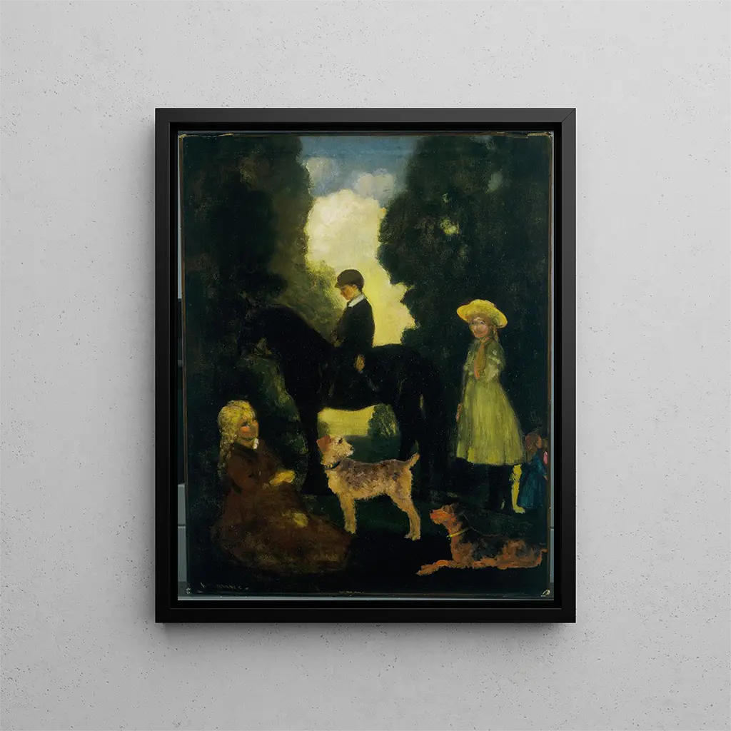 Laajan taidehistorian panoraamassa jotkin teokset onnistuvat vangitsemaan ainutlaatuisen olemuksen, hetken, joka on pysäytetty unen ja todellisuuden välillä. "Lasten, koirien ja poni - Arthur Bowen Davies" sopii täydellisesti tähän kategoriaan. Tämä teos kuvaa maalaisidylliä, jossa lapsuuden ilo sekoittuu luonnon lempeyteen. Herkän väripaletin ja harmonisen sommittelun avulla Davies onnistuu kuljettamaan katsojan maailmaan, joka huokuu rauhaa ja viattomuutta. Lapset, heidän koirakumppaniensa ja ponin ympäröiminä, vaikuttavat kukoistavan paikassa, jossa aika pysähtyy. Tämä idyllinen esitys kutsuu pohdintaan ja pakoon, tehden teoksesta todellisen elämän maalauksen.