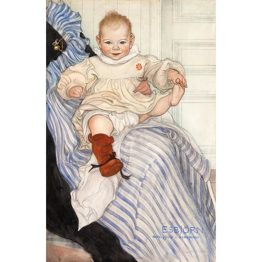Carl Larsson, figure emblématique du mouvement arts & crafts, est reconnu pour sa capacité à allier art et vie quotidienne. Né en 1853 en Suède, il a été influencé par le mouvement impressionniste et a développé un style unique qui célèbre la beauté des moments simples. Larsson a consacré une grande partie de son œuvre à représenter sa famille et son foyer, transformant des scènes ordinaires en œuvres d'art. Son approche a non seulement redéfini le portrait familial, mais a également contribué à l'essor de l'art scandinave au début du XXe siècle. Ses toiles, comme celle d'Esbjörn, continuent d'inspirer et de toucher le cœur des amateurs d'art à travers le monde.