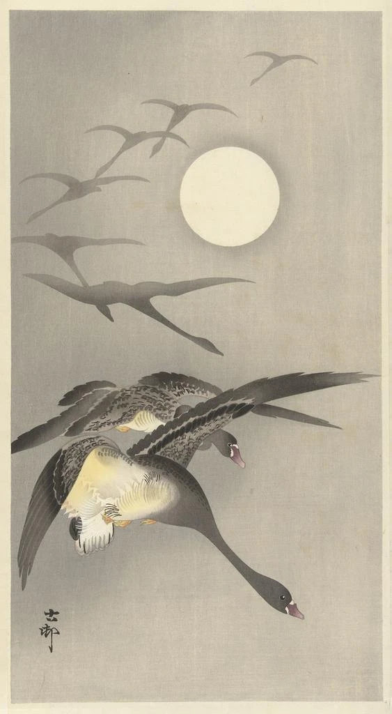 Taidetuloste | Oies à la pleine lune - Ohara Koson