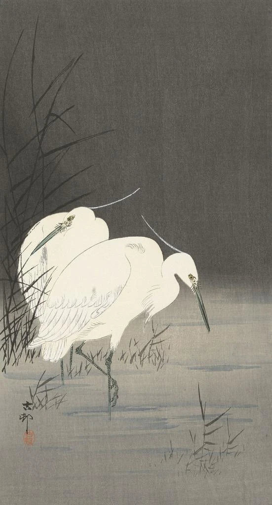 Ohara Koson, joka toimi 1900-luvun alussa, tunnetaan yhtenä japanilaisen taidegrafiikan mestareista, erityisesti ukiyo-e-tyylissä. Hänen teoksensa erottuvat erityisellä huomiolla luontoon ja eläimistöön, vaikuttuen japanilaisista taiteellisista perinteistä samalla kun sisällyttävät moderneja elementtejä. Koson onnistui vangitsemaan aikansa olemuksen, joka oli täynnä yhteiskunnallisia ja kulttuurisia muutoksia, säilyttäen samalla luonnon ajattoman kauneuden. Hänen teoksensa, kuten "Kaksi lokkia ruovikossa", ovat todistuksia hänen taidostaan ja sitoutumisestaan taiteeseen, jatkaen inspiroimista tuleville sukupolville.