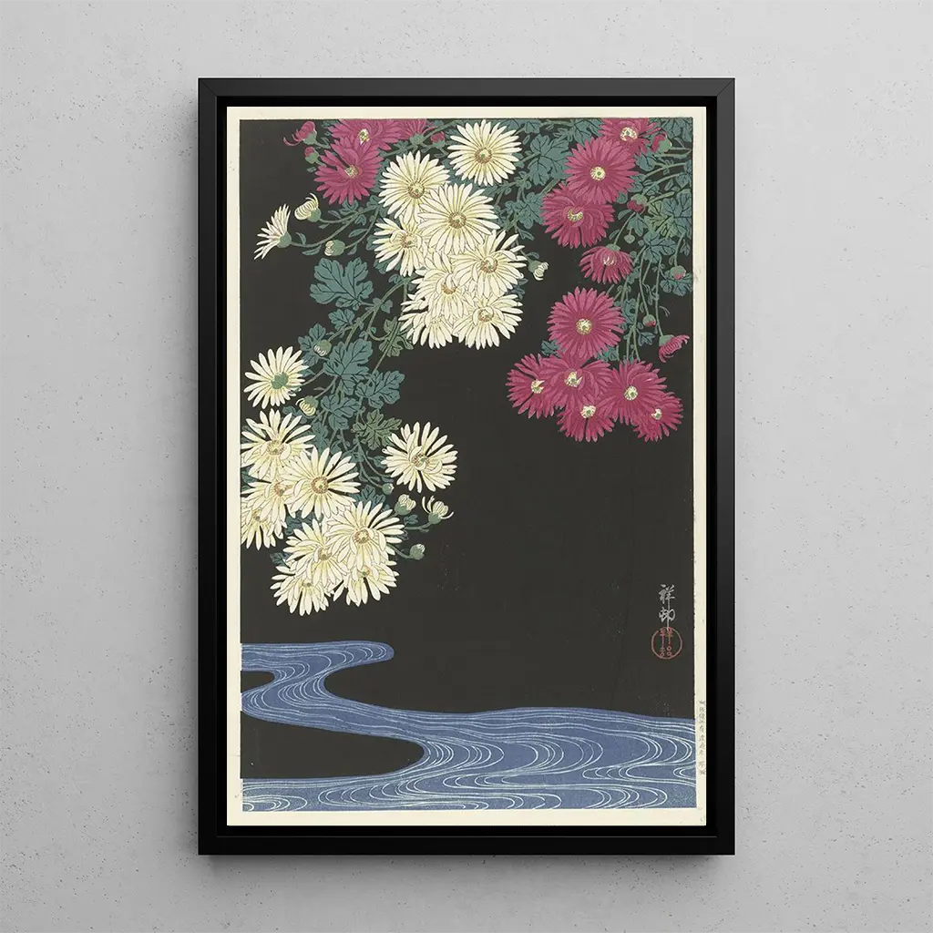 Taidetuloste | Krysanteemit ja juokseva vesi - Ohara Koson