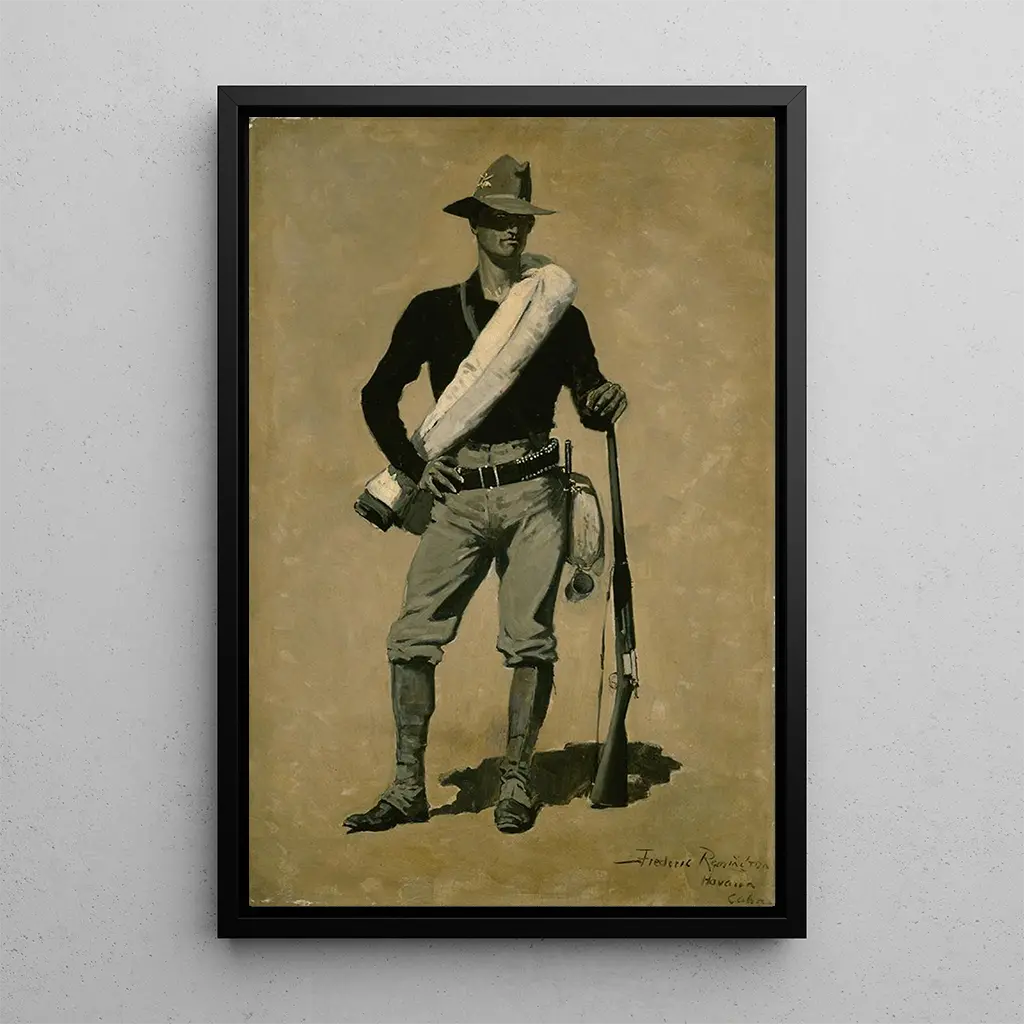 Frederic Remington, merkittävä hahmo amerikkalaisessa taiteessa, onnistui ikuistamaan aikansa konfliktit ja sankarit. 1800-luvun lopulla aktiivinen taiteilija, hän sai syvällistä vaikutteita hispano-amerikkalaisesta sodasta, merkittävästä tapahtumasta, joka muovasi kansallista identiteettiä. Hänen teoksensa, usein rohkeuden ja seikkailun kertomuksiin inspiroituneita, osoittavat kiinnostusta sotilaallisiin kertomuksiin ja alkuperäiskulttuureihin. Remington oli näin osaltaan luomassa romantisoitua kuvaa lännestä ja siihen liittyvistä konflikteista, jättäen pysyvän taiteellisen perinnön.