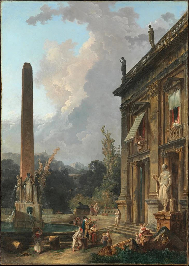 Hubert Robert, 1700-luvun ranskalainen taiteilija, tunnetaan romanttisista maisemistaan ja muinaisten raunioiden kohtauksistaan. Uuden klassismin vaikutteet näkyvät hänen tyylissään, jossa hän on onnistunut vangitsemaan luonnon olemuksen ja lisäämään siihen mielikuvituksellisia elementtejä. Hänen uransa, joka sisältää matkoja Roomaan ja yhteistyötä nimekkäiden taiteilijoiden kanssa, on auttanut häntä kehittämään ainutlaatuisen tyylin, joka yhdistää ylevän ja kuvauksellisen. "Ménestrels errants" sijoittuu aikaan, jolloin taiteilija tutkii melankolian ja nostalgiaan liittyviä teemoja, osoittaen kiinnostuksensa ihmisluontoon ja sen tunteisiin.