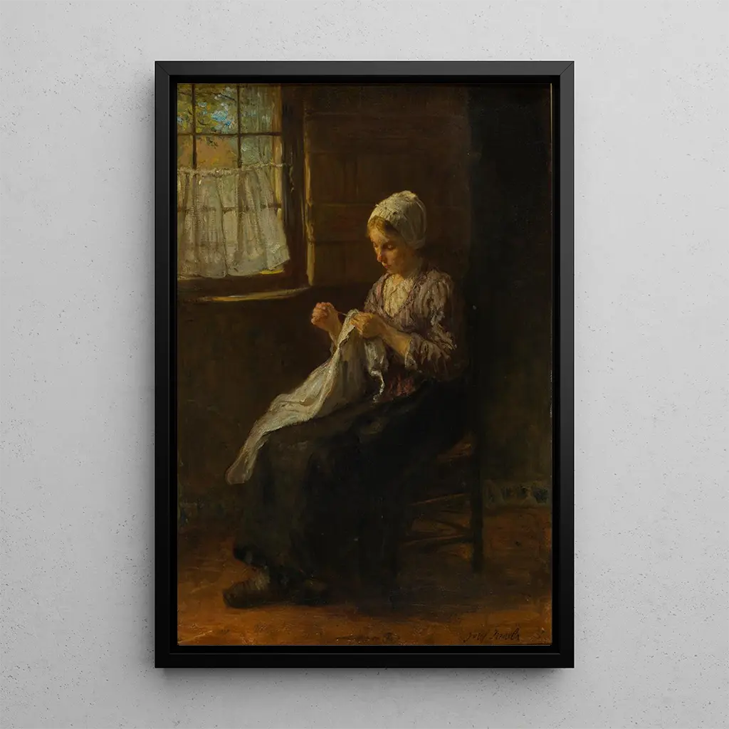 La jeune taidegrafiikka : yksi kunnianosoitus arjen yksinkertaisuudelle Tässä koskettavassa teoksessa Jozef Israëls vangitsee intiimin ja herkkävaistoisen hetken olemuksen. Nuori taidegrafiikan tekijä, syventyneenä työhönsä, on ympäröity pehmeän ja lämpimän sävyisillä kankailla, luoden rauhallisen tunnelman. Valon leikit, hienovaraisesti toteutettuina, korostavat hänen keskittyneen kasvojensa yksityiskohtia, kun taas pastellisävyt viestivät kodin arjen lempeydestä. Tämä taidegrafiikka kutsuu rauhoittavaan pohdintaan, jossa jokainen sivellinvedos tuntuu kertovan tarinan omistautumisesta ja intohimosta. Jozef Israëls : hollantilaisen realismitaiteen mestari Jozef Israëls, 1800-luvun realismiliikkeen merkittävä hahmo, on taitavasti tulkinnut inhimillisiä tunteita teostensa kautta. Hän syntyi vuonna 1824 Groningenissa ja sai vaikutteita hollantilaisilta mestareilta, samalla kun hän sisällytti elementtejä ranskalaisesta maalauksesta. Hänen työnsä keskittyy usein arjen kohtauksiin, korostaen työväenluokan arvokkuutta. Israëls oli keskeisessä roolissa hollantilaisen maalaustaiteen uudelleen määrittelyssä, siirtyen historiallisista teemoista tutkiakseen yksinkertaista ja aitoa elämää nykyisensä keskuudessa. Monipuolinen sisustuksellinen taidegrafiikka "Nuoren taidegrafiikan" taidegrafiikan reproduktio on arvokas lisä sisustukseesi, olipa kyseessä olohuone, toimisto tai makuuhuone. Sen reproduktiokorkeuden ansiosta saavutetaan merkittävä uskollisuus alkuperäisteoksen yksityiskohdille, mikä mahdollistaa Israëlsin lahjakkuuden täysipainoisen arvostamisen. Tämä taidegrafiikka, sen esteettisen vetovoimansa ansiosta, tuo lämpöä ja viihtyisyyttä mihin tahansa tilaan. Valitsemalla tämän taidegrafiikan, valitset teoksen, joka ei ainoastaan kaunista sisustustasi, vaan myös herättää pohdintaa arjen kauneudesta.