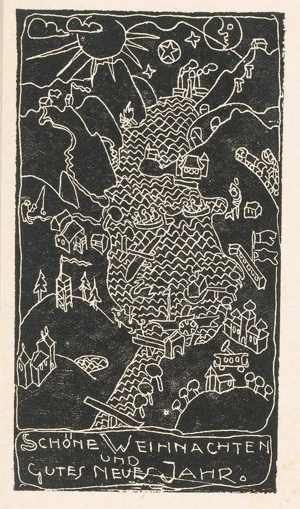 Taidetuloste | Joulukortti, jossa kumpuileva maisema ja järvi - Reijer Stolk