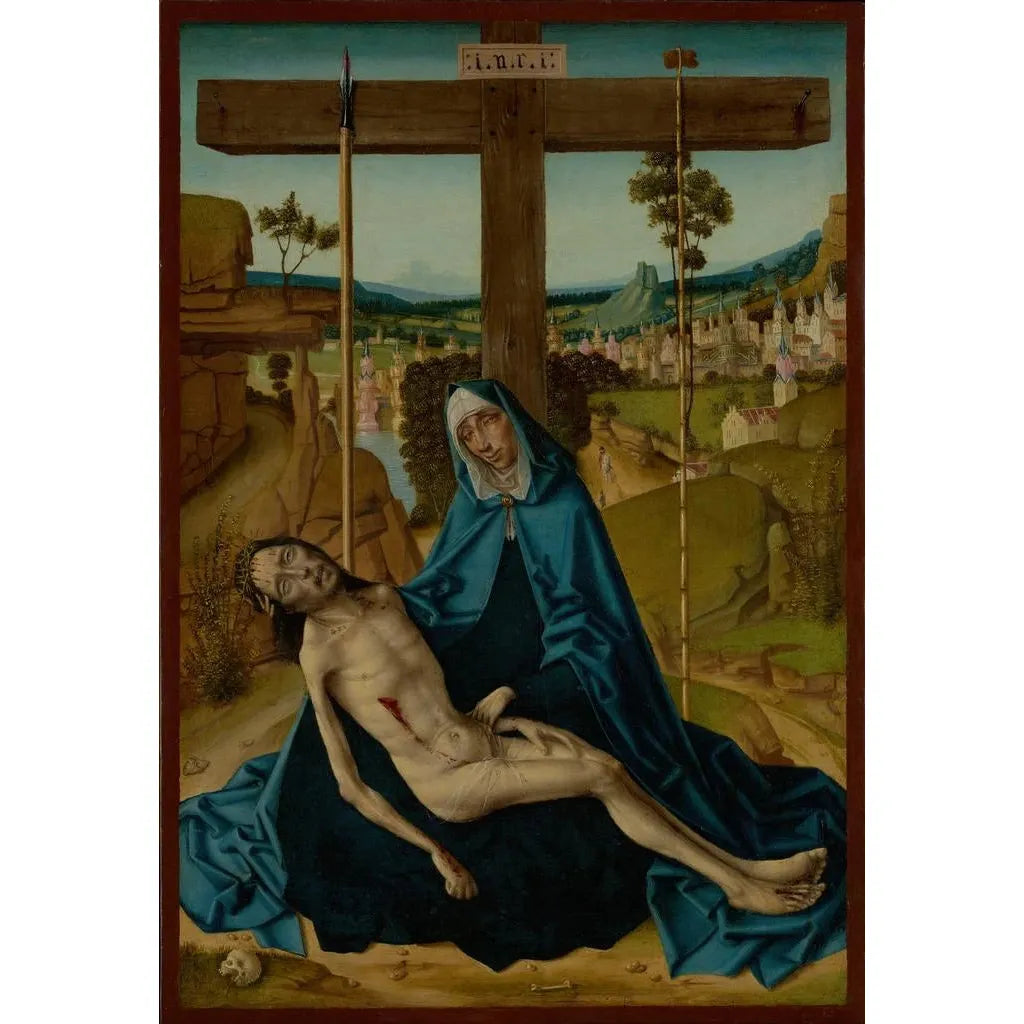 {{reproduction}} Piéta, Fernando Gallegon piiriin kuuluvan merkittävän teoksen, herättää syvää tunnetta vaikuttavan Marian, joka pitää Kristuksen ruumista, esityksen kautta. Tummat värit ja varjostukset korostavat kohtauksen surumielisyyttä, kun taas öljyvärimaalauksen tekniikka antaa rikkaan tekstuurin ja vaikuttavan syvyyden. Tämän taulun tunnelma on sekä juhlallinen että pohdiskeleva, kutsuen katsojan pohtimaan kärsimystä ja sovitusta. Jokainen yksityiskohta, vaatteiden rypytyksistä kasvojen ilmeisiin, vahvistaa voimakasta emotionaalista yhteyttä teokseen.