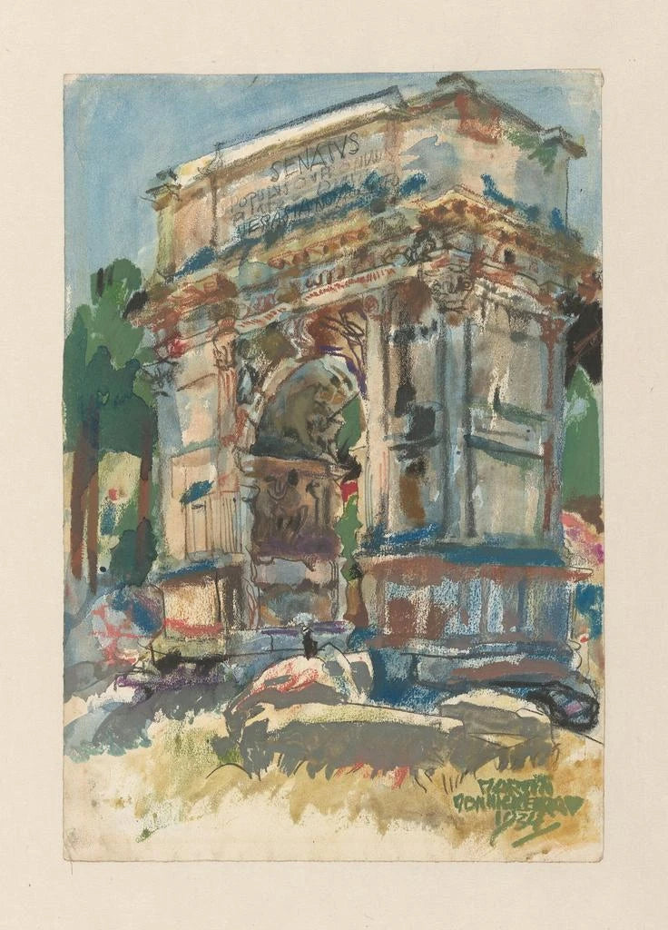 Martin Monnickendam, joka syntyi 1800-luvun lopulla, on hollantilainen taiteilija, jonka työ sijoittuu rikkaaseen historiallisesti kontekstiin. Realismin ja impressionismin vaikutteita saanut hän on onnistunut vangitsemaan historiallisia kohtauksia ja maisemia suurella hienovaraisuudella. Titus-kaa, monumentti, joka rakennettiin vuonna 81 jKr. keisari Tituksen voiton kunniaksi, on aihe, joka resonoi Monnickendamin kiinnostuksen kanssa historiaan ja arkkitehtuuriin. Tämän monumentin esittäminen todistaa muistin ja kulttuurisen perinnön tärkeyttä, samalla kuin se sijoittuu taiteelliseen perinteeseen, joka arvostaa menneisyyttä.