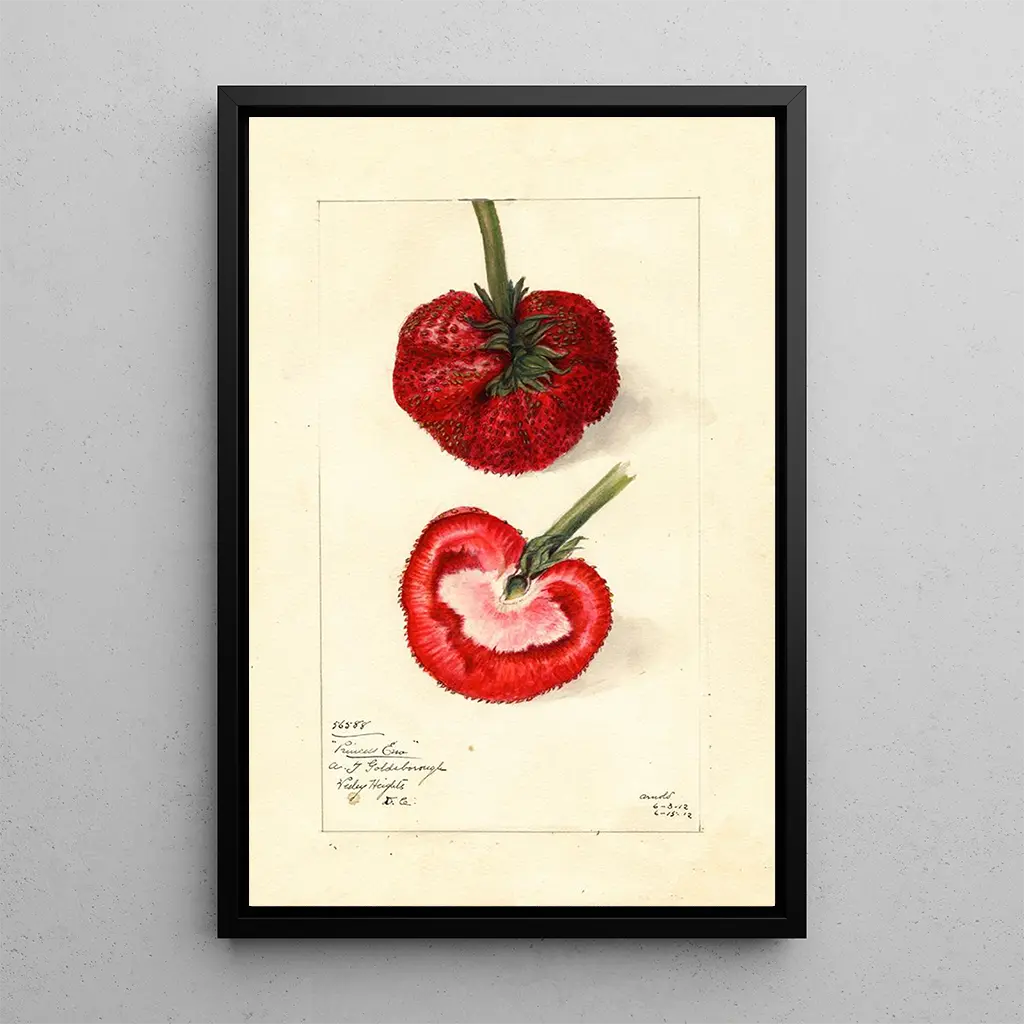 Fragaria Princesse Ena -taidegrafiikan reproduktio on koristeellinen valinta, joka lisää viehättävyyttä mihin tahansa tilaan. Oli kyseessä olohuone, keittiö tai makuuhuone, tämä taulu sopii kaikkiin sisustustyyleihin. Sen tulostuslaatu takaa poikkeuksellisen uskollisuuden väreille ja yksityiskohdille alkuperäisteoksessa, tarjoten esteettistä vetovoimaa. Sisustukseesi lisäämällä tämän kankaan luot lämpimän ja kutsuvan ilmapiirin, samalla juhlistaen hedelmien ja luonnon ohikiitävää kauneutta.