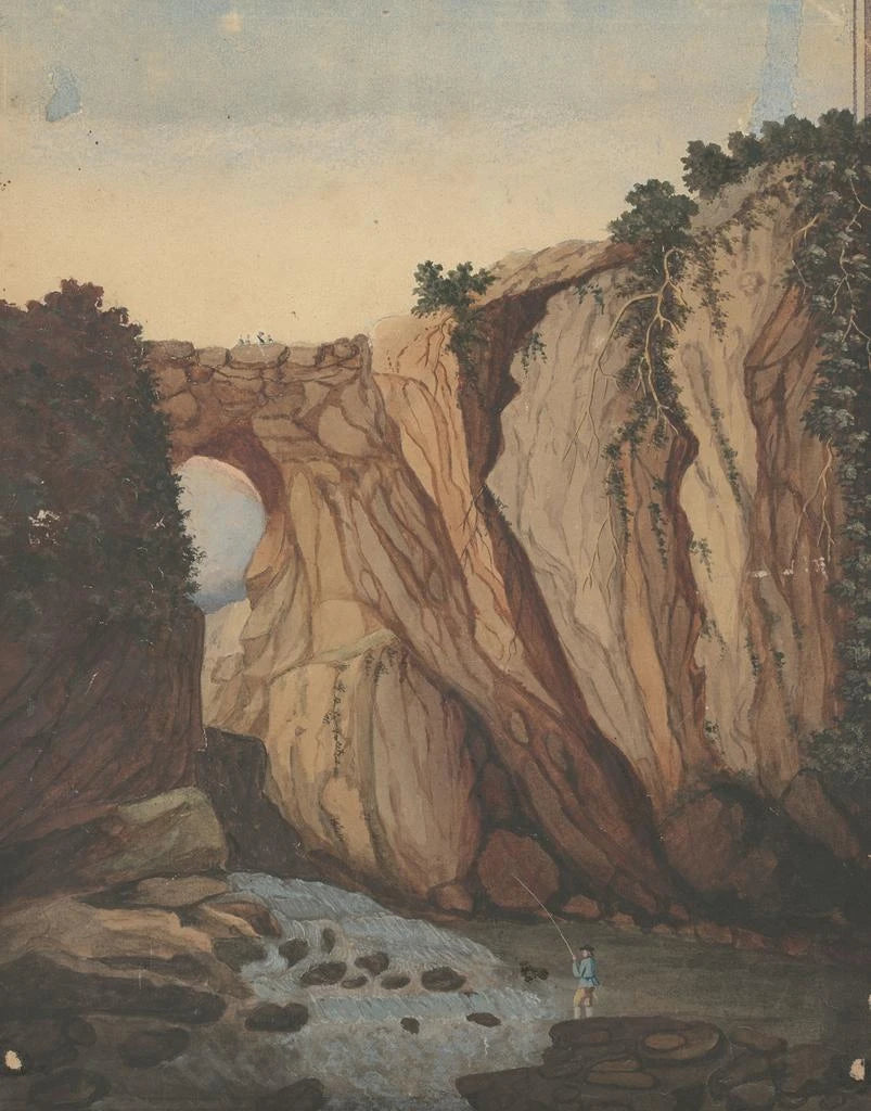 Laajan taiteen historian panoraamanäytössä jotkut teokset nousevat hiljaisina todistajina luonnonkauneudesta ja harmonian tasapainosta ihmisen ja ympäristön välillä. "Virginian luonnonk bridge - Nimetön" on yksi näistä teoksista, jotka vangitsevat luonnon ytimen, tarjoten runollisen ja ajattoman näkymän maisemiin, jotka aika on muovannut. Tämä maalaus, jonka tekijä pysyy varjossa, kutsuu meitä ihailemaan maailmaa, jossa luonto hallitsee, ja jossa jokainen yksityiskohta on ylistys amerikkalaisten maisemien majesteettisuudelle. Tämän teoksen kautta katsoja matkustaa visuaaliseen matkaan, hetkeen, joka on pysäytetty unen ja todellisuuden välillä.