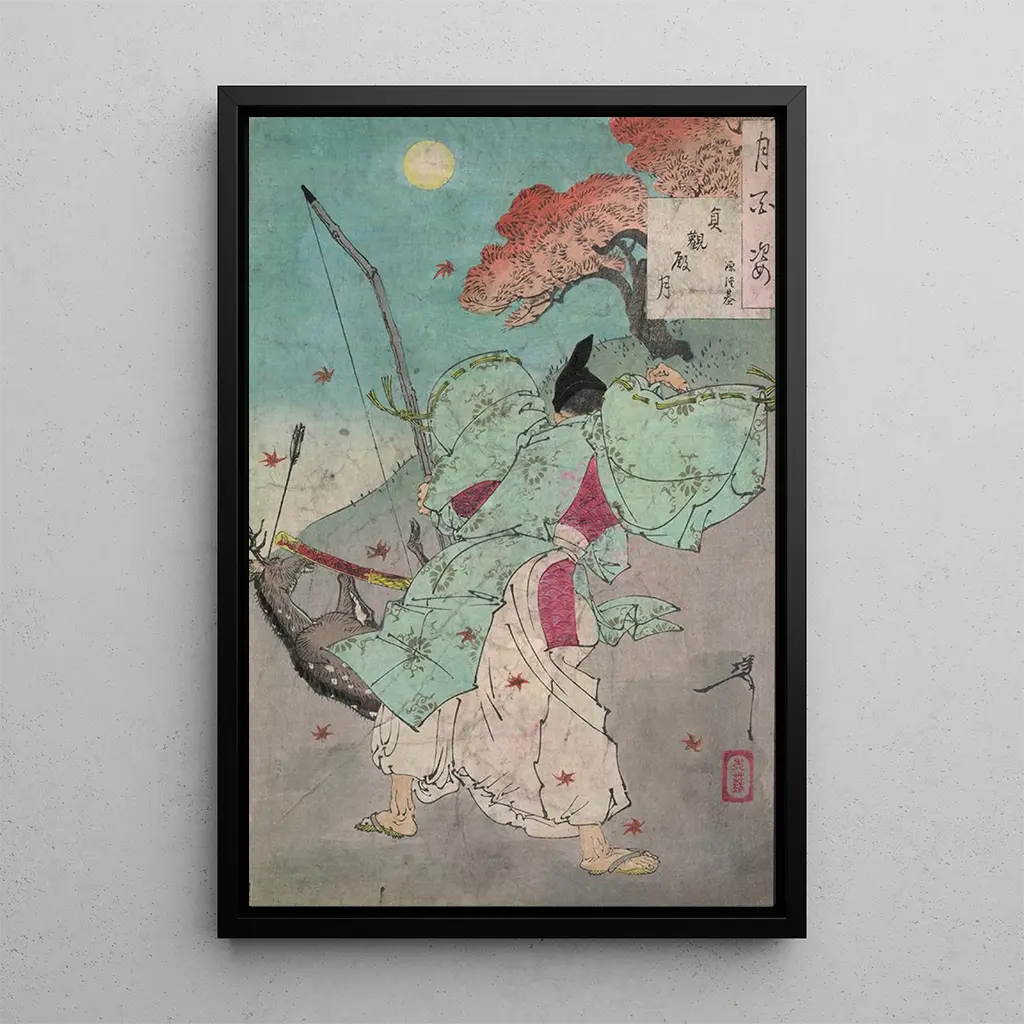 Lune de Jganden : un éclat de sérénité nocturne La toile Lune de Jganden de Tsukioka Yoshitoshi évoque une scène nocturne empreinte de tranquillité et de mystère. La lune, majestueuse et lumineuse, domine le paysage, tandis que des ombres douces enveloppent les éléments naturels. Les couleurs, subtilement nuancées, créent une atmosphère paisible, propice à la contemplation. La technique de l'estampe, caractéristique de Yoshitoshi, se manifeste ici par des détails raffinés et une harmonie visuelle qui captivent le regard. Cette œuvre invite à une immersion dans un monde où la nature et l'esprit se rejoignent, offrant une expérience esthétique unique. Tsukioka Yoshitoshi : un pionnier de l'estampe moderne Tsukioka Yoshitoshi, actif durant la seconde moitié du XIXe siècle, est reconnu comme l'un des plus grands maîtres de l'estampe japonaise. Son œuvre se distingue par une approche novatrice qui allie tradition et modernité, influencée par les bouleversements de son époque. Yoshitoshi a su capturer des récits historiques et légendaires avec une sensibilité unique, tout en expérimentant avec la couleur et la forme. Lune de Jganden est un exemple parfait de son talent, illustrant son habileté à créer des compositions captivantes qui résonnent avec les émotions humaines et les traditions culturelles. Une acquisition décorative aux multiples atouts La taidegrafiikka de Lune de Jganden constitue un ajout précieux à toute décoration intérieure, qu'il s'agisse d'un salon, d'un bureau ou d'une chambre. Sa qualité d'impression et sa fidélité à l'œuvre originale garantissent un rendu visuel impressionnant. En intégrant ce tableau dans votre espace, vous apportez non seulement une touche d'élégance, mais aussi une profondeur artistique qui enrichit votre environnement. L'attrait esthétique de cette toile, avec ses nuances délicates et son ambiance sereine, en fait un choix idéal pour ceux qui souhaitent allier beauté et culture dans leur décoration intérieure.