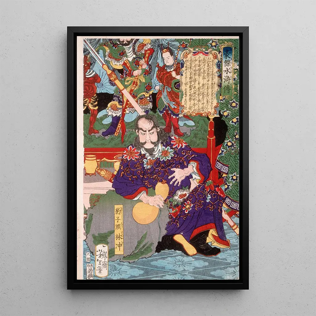 Tässä taidegrafiikkaan perustuvassa Héros du roman Suikoden -taidegrafiikassa Tsukioka Yoshitoshi sukelsimme rohkeuden ja legendan maailmaan. Hahmot, upeasti yksityiskohtaiset, on pukeutunut perinteisiin japanilaisiin pukuisiin, kun taas kirkkaat värit ja dynaamiset kuviot välittävät energisen ja elävän tunnelman kohtaukseen. Ukiyo-e-tyylinen taidegrafiikka, joka on Yoshitoshin taiteen tunnusmerkki, ilmenee tässä virtaviivaisina linjoina ja vaikuttavina kontrasteina, luoden sekä dramaattisen että runollisen ilmapiirin. Jokainen sankari, jäätyneenä toimintatilanteeseen, kertoo tarinan, joka resonoi Japanin feodaalisen hengen kanssa.
