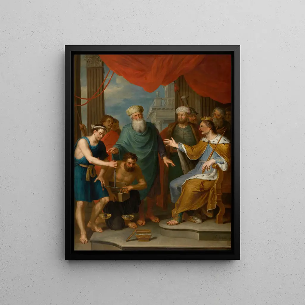 Rikkaassa barokin maalaustaiteen universumissa teos "Joseph, taidetuloste Egyptin valvonnasta" Balthasar Bescheyn käsissä nousee kiehtovaksi todistukseksi 1600-luvun taiteellisesta virtuositeetista. Tämä maalaus, joka kuvaa ikonisen kohtauksen Raamatun kertomuksesta, kuljettaa katsojan maailmaan, jossa valo ja varjo tanssivat kasvoilla ja kankaissa, paljastaen hahmojen intensiiviset tunteet. Kompositio, sekä dynaaminen että harmoninen, vangitsee hetken tavalla, joka kutsuu pohdintaan. Josephin, keskeisen hahmon, esittäminen symboloi viisautta ja ennakointia, ominaisuuksia, jotka resonoivat syvästi aikakauden arvojen kanssa. Katsellessamme tätä teosta, meidät viedään välittömästi symbolismin ja henkisyyden täyttämään kertomukseen.