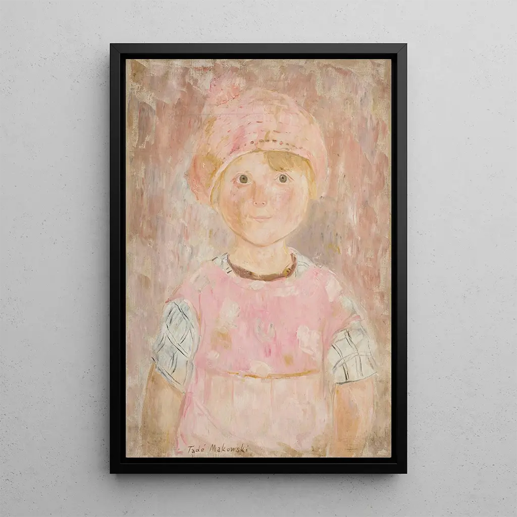 Taidetuloste | Pieni tyttö vaaleanpunaisessa mekossa ja myssyssä - Tadeusz Makowski