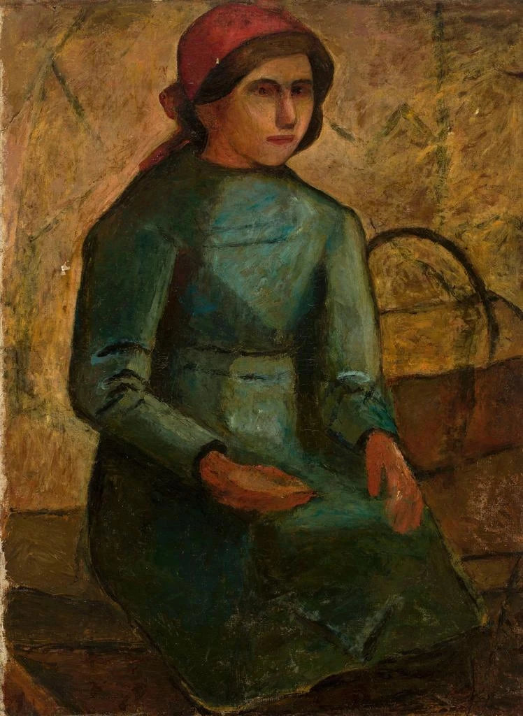 Taidetuloste | Tytär vihreässä mekossa korin kanssa - Tadeusz Makowski