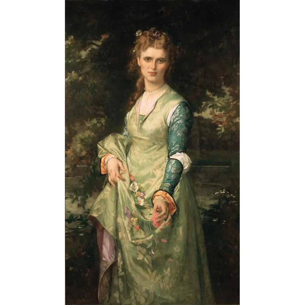 Tässä teoksessa Alexandre Cabanel vangitsee Christina Nilssonin, kuuluisan oopperalaulajan, olemuksen esittäen hänet Ophélien roolissa. Kankaalle on tallentunut romanttinen tunnelma, jossa pastellisävyjen pehmeys sekoittuu tummempiin sävyihin, viitaten sekä kauneuteen että henkilön melankoliaan. Cabanelin tekniikka, jossa on tarkat yksityiskohdat ja mestarillinen valon käyttö, herättää eloon tämän naisfiguurin sävyt. Jokainen sivellinvedos tuntuu kertovan tarinan, kuljettaen katsojan unelmien ja intohimon maailmaan.