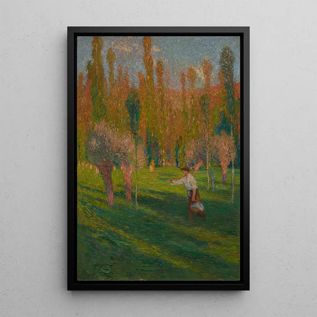 Faucheur rentoutuu työstä Le Moissonneur: kunnianosoitus maaseudun elämälle Tässä elävässä teoksessa Henri Martin vangitsee yksinkertaisen ja aitoon työn kauneuden pelloilla. "Le Moissonneur" -taulu kuvaa miestä palaamassa kotiin pitkän työpäivän jälkeen, hänen piirteensä ovat väsyneitä mutta myös tehtävänsä täyttymisen tyytyväisiä. Lämpimät värit, jotka vaihtelevat viljan kultaisista sävyistä peltojen vihreisiin, luovat sekä rauhallisen että dynaamisen tunnelman. Martinin impressionistinen tekniikka, sen sulavat ja ilmeikkäät siveltimenvedot, herättävät kohtauksen eloon ja kutsuvat katsojan tuntemaan auringonlaskun lämpöä ja sadonkorjuun tuoksua. Henri Martin: post-impressionismin mestari Henri Martin, syntynyt 1860, on ranskalainen taiteilija, joka on onnistunut vakiinnuttamaan asemansa post-impressionismin liikkeessä. Häntä ovat vaikuttaneet taiteilijat kuten Claude Monet ja Paul Cézanne, ja hän kehittää ainutlaatuisen tyylin, joka yhdistää kirkkautta ja väriä. Uransa aikana Martin on tutkinut erilaisia teemoja, mutta hänen kiintymyksensä luontoon ja maaseudun elämään pysyy pääasiallisena. Hänen teoksensa "Le Moissonneur" sijoittuu aikaan, jolloin taiteilija pyrkii juhlistamaan arjen kauneutta ja samalla osoittamaan syvää kunnioitusta maanviljelijöiden työlle. Hänen taiteellinen perintönsä inspiroi edelleen monia nykytaiteilijoita. Monipuolinen koristeellinen hankinta Henri Martinin "Le Moissonneur" -taulun taidegrafiikka on erinomainen koristevalinta erilaisiin tiloihin, olipa kyseessä lämmin olohuone, inspiroiva toimisto tai rauhoittava makuuhuone. Sen tulostuslaatu takaa merkittävän uskollisuuden alkuperäisen teoksen väreille ja yksityiskohdille, jolloin voit nauttia sen maalaismaisemasta täysin siemauksin. Sisällyttämällä tämän taidegrafiikan sisustukseesi lisäät eleganssia ja rauhaa, samalla juhlistaen ranskalaista taidetta. Tämä taidegrafiikka ei ole vain koriste-elementti, vaan myös kutsu mietiskelyyn ja luonnon kauneuden arvostamiseen.