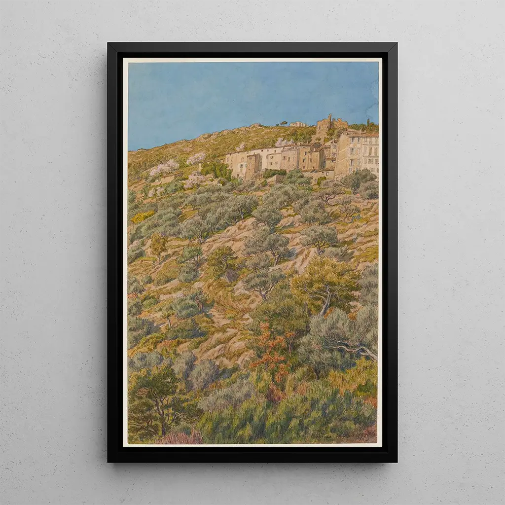 Kohteessa "Bormes" Henri Rivière kuljettaa meidät Välimeren eloisaan maisemaan, jossa värit ja valo loistavat. Tämä taidegrafiikka kuvaa Etelä-Ranskan maisemien kauneutta, missä kukkulat sulautuvat mereen täydellisessä harmoniassa. Pastellivärit ja Rivière'n pehmeät siveltimenvedot luovat rauhallisen ja rentouttavan tunnelman, kutsuen katsojan uppoutumaan tähän luonnon helmaan. Kompositio, joka on sekä yksinkertainen että kuvaileva, vangitsee alueen olemuksen ja kunnioittaa paikkojen kauneutta.