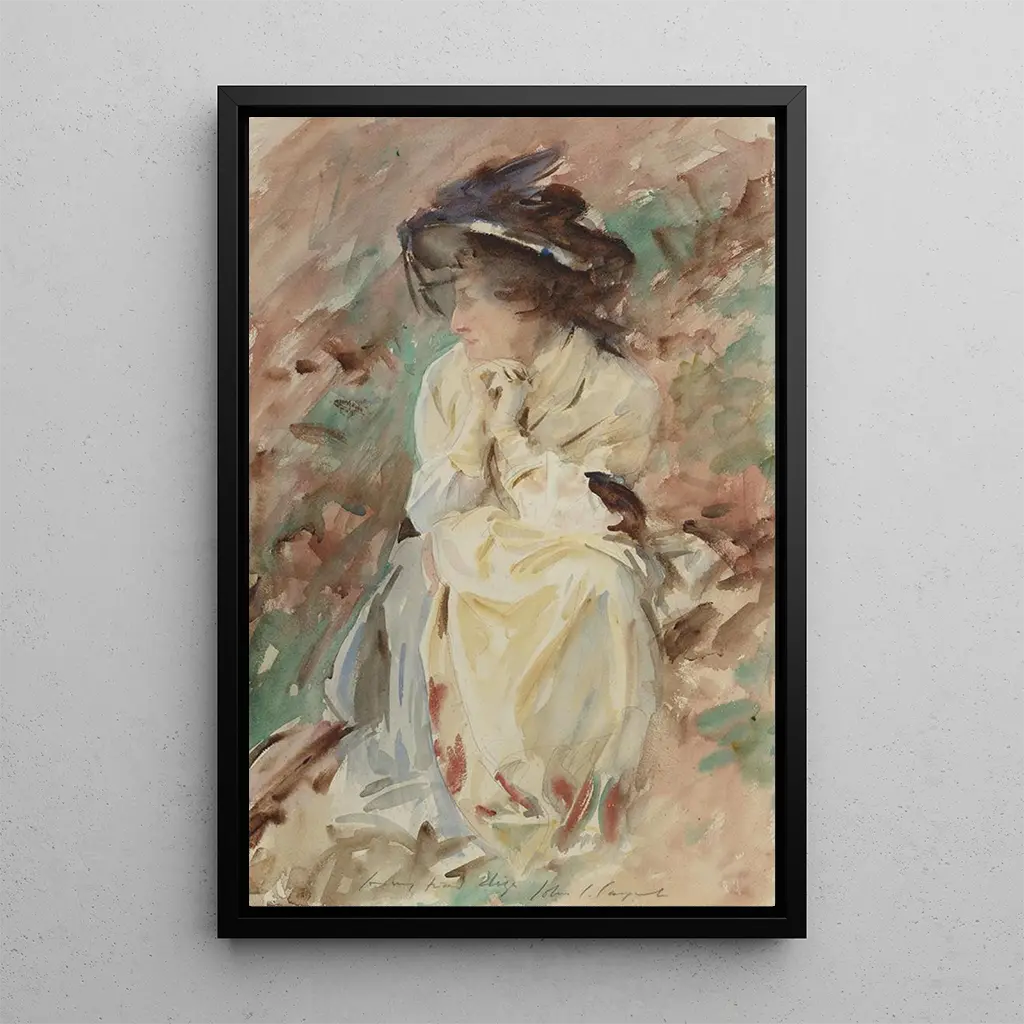 Elizan taidegrafiikan, jonka on luonut John Singer Sargent, herättää välittömästi katseessa kiehtovan pehmeyden ja hienostuneisuuden. Maalaus esittelee herkkäluontoisen nuoren naisen, joka on pukeutunut eleganttiin mekkoon, joka vaikuttaa leijuvan hänen ympärillään. Pastellivärit ja hienovaraisesti hajautettu valo luovat unenomaisen tunnelman, kun taas mallin kasvojen ja käsien yksityiskohtaiset piirteet todistavat Sargentin poikkeuksellisesta taidosta. Jokainen sivellinvedos tuntuu sisältävän aistikkaan tunteen, kutsuen katsojan uppoutumaan tämän naisfiguurin intiimiin maailmaan.