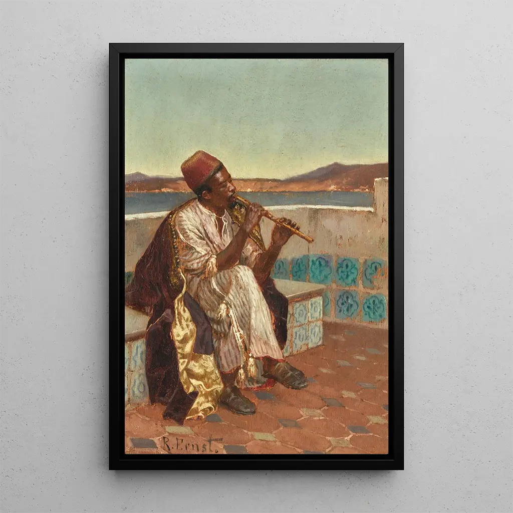 Rudolf Ernst, itävaltalainen 1800-luvun taiteilija, on kuuluisa itämaisten kohtauksien esityksistään, jotka ovat saaneet vaikutteita hänen matkoiltaan Pohjois-Afrikassa ja Lähi-idässä. Hänen tyylinsä, joka yhdistää realismia ja impressionistisia vaikutteita, mahdollistaa hänen tallentaa värien ja tekstuurien rikkautta maisemissa ja henkilöissä, joita hän maalaa. Itämaisten taiteilijoiden liikkeen ytimessä Ernst on onnistunut hurmaamaan yleisönsä vaikuttavilla teoksillaan, jotka todistavat hänen ihailustaan kohtaamiensa kulttuurien kohtaan. "Musicien sur la terrasse" kuvaa täydellisesti hänen kykyään ikuistaa elämän hetkiä, jotka ovat täynnä runoutta ja aitoutta.