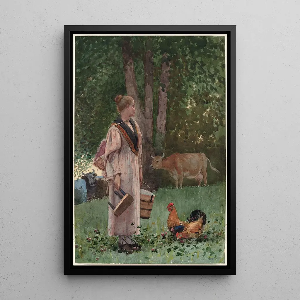 Winslow Homer, merkittävä hahmo 1800-luvun amerikkalaisessa taiteessa, tunnetaan kyvystään vangita päivittäinen elämä suurella aitoudella. Hän syntyi Bostonissa ja aloitti uransa kuvittajana ennen siirtymistään maalaamiseen. Hänen teoksensa, usein luonnosta ja maaseudusta inspiroituneita, heijastavat ihmisen olemassaolon haasteita ja iloja. "La laitière" sijoittuu aikaan, jolloin Homer tutki maaseudun ja yksinkertaisuuden teemoja, tarjoten lempeän näkökulman ympäröivään maailmaan. Hänen vaikutuksensa jatkuu, ja hänen taulunsa inspiroivat yhä sukupolvia taiteilijoita.