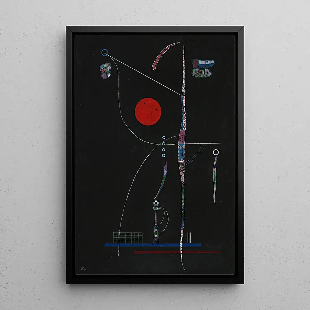 Wassily Kandinsky, né en 1866, est une figure emblématique de l'art moderne, reconnu pour son rôle dans le développement de l'abstraction. Influencé par la musique et les philosophies spirituelles, il a cherché à exprimer des sentiments à travers des formes et des couleurs. « L'accent rouge » illustre son approche unique, où chaque couleur et forme est choisie pour sa capacité à évoquer des émotions. Kandinsky a également été membre du groupe Blaue Reiter, qui a joué un rôle clé dans l'évolution de l'art expressionniste en Europe, faisant de lui une figure incontournable de son époque.