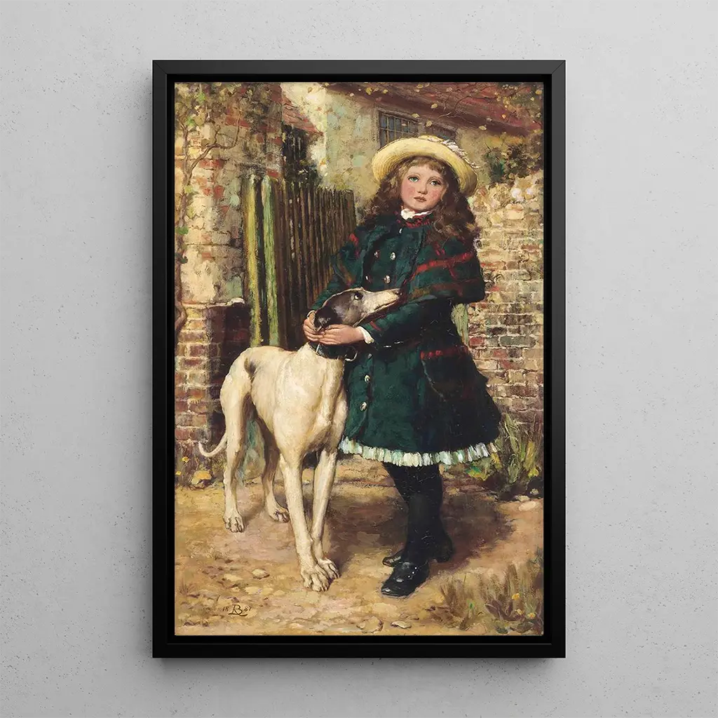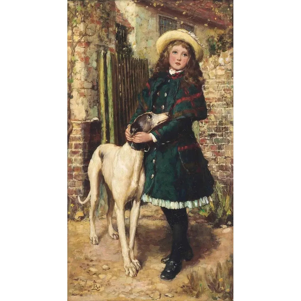 Briton Rivière, artiste britannique du XIXe siècle, est reconnu pour ses œuvres qui capturent la beauté de la nature et la vie quotidienne. Influencé par le mouvement préraphaélite, il développe un style qui allie précision technique et sensibilité poétique. Rivière est également connu pour ses représentations d'animaux, mais "L À la porte du jardin" illustre son talent pour dépeindre des scènes humaines en harmonie avec leur environnement. Son travail s'inscrit dans une époque où l'art cherche à redécouvrir la beauté du monde naturel, tout en répondant aux préoccupations sociales de son temps. L'œuvre de Rivière demeure un témoignage précieux de l'esthétique victorienne.
