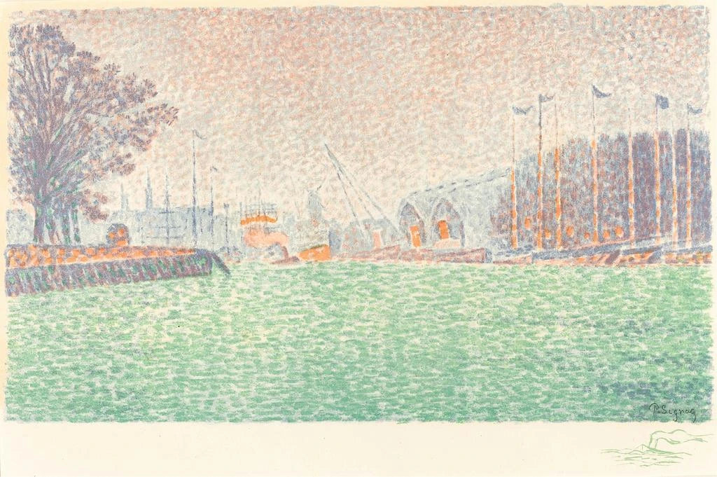 Paul Signac, syntynyt 1863, on merkittävä neo-impressionismin liikkeen hahmo, tunnettu pointillismin tekniikastaan. Georges Seuratilta vaikutteita saanut, hän kehitti ainutlaatuisen tyylin, joka suosii pieniä väritahroja luodakseen valoisia efektejä. Signac matkusti Ranskan halki, tallentaen merellisiä ja kaupunkimaisemia herkästi. The taidegrafiikka À Flessingue, valmistunut vuonna 1904, todistaa hänen rakkauttaan mereen ja kykyään muuttaa valoa väreiksi. Hänen teoksensa on vaikuttanut pysyvästi moderniin taiteeseen ja sitä juhlitaan yhä sen kauneuden ja innovatiivisuuden vuoksi.