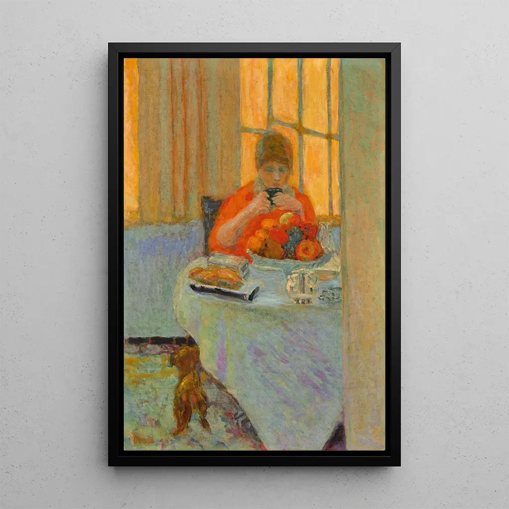 Pierre Bonnard, syntynyt vuonna 1867, on yksi fauvismin ikonisimmista hahmoista, taiteellisesta liikkeestä, joka suosii väriä ja tunnetta. Vaikutteita ovat antaneet taiteilijat kuten Édouard Vuillard ja Paul Gauguin, Bonnard kehittää ainutlaatuisen tyylin, joka on luonteeltaan intiimi ja värikylläinen. Hänen teoksensa heijastaa etsintää kauneudesta arjessa, usein inspiroituneena hänen henkilökohtaisesta elämästään ja läheisistään. "Le petit déjeuner" on tämän lähestymistavan symboli, korostaen yksinkertaisia elämän nautintoja. Taiteensa kautta Bonnard kutsuu meitä uudelleen löytämään arkipäivän hetkien taian.