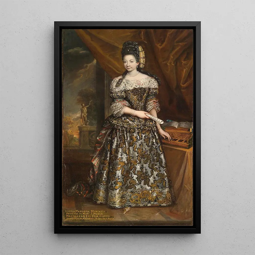 La taidegrafiikka de la Comtesse Rosa Arconati paljastaa naisen, jonka mystinen kauneus vangitsee katseen. Hän on kuvattu elegantissa asennossa, joka heijastaa sekä jaloutta että melankoliaa. Rikkaat ja syvät värit, joissa yhdistyvät sinisen ja kullan sävyt, luovat intiimin ja majesteettisen tunnelman. Maalaustekniikka, todennäköisesti öljyvärillä toteutettu, mahdollistaa yksityiskohtien ja hienovaraisen kasvonpiirteen tarkan esittämisen, tarjoten vaikuttavan näkymän 1600-luvun aristokratiaan. Tämä teos, sen ilmaisullisuuden ansiosta, kutsuu katsojan sukeltamaan henkilökohtaiseen historiaan, samalla kun se viittaa aikaan, jolloin portraitti oli sosiaalisen aseman symboli.