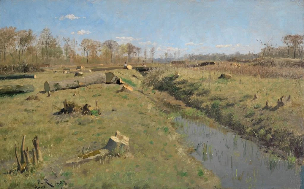 "Abattage de bois dans la forêt de Durlach" de Paul von Ravenstein est une œuvre qui célèbre la beauté sauvage et la puissance de la nature. La toile dépeint une scène dynamique où des bûcherons s'affairent au cœur d'une forêt luxuriante. Les couleurs terreuses et les nuances de vert évoquent une atmosphère vivante et authentique, tandis que la technique de Ravenstein, alliant réalisme et impressionnisme, donne vie à chaque détail. Les jeux de lumière filtrant à travers les arbres créent une ambiance à la fois paisible et énergique, invitant le spectateur à s'immerger dans cette nature majestueuse.