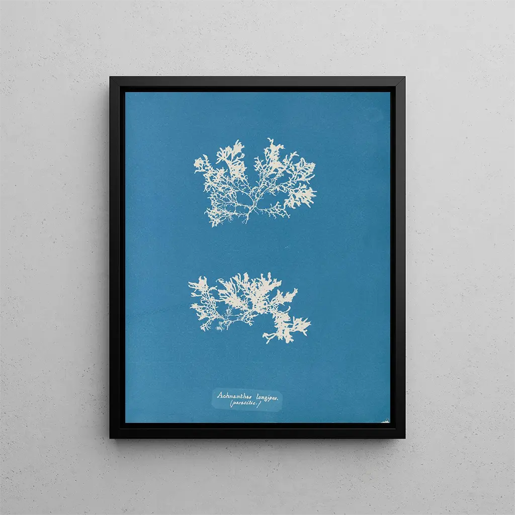 Anna Atkinsin "Achnanthes longipes parasite" -taidetuloste on paljon enemmän kuin pelkkä kasvi-esitys; se on todellinen juhla luonnonkauneudelle ja tieteelle. 1800-luvulla luotu teos edustaa harmonista yhdistelmää taiteesta ja tieteestä, suuntausta, joka nousi tuohon aikaan. Anna Atkins, valokuvauksen ja kasvitieteen pioneeri, onnistui vangitsemaan levien hienostuneisuuden innovatiivisin tekniikoin. Hänen cyanotype-menetelmänsä, joka käyttää auringonvaloa kuvien tulostamiseen, antaa teoksilleen eteerisen, lähes maagisen laadun. "Achnanthes longipes parasite" -taidetulosteen reproduktio mahdollistaa ihailijoiden uppoutumisen tähän kiehtovaan maailmaan, jossa luonto ja taide kohtaavat harvinaisella eleganssilla.