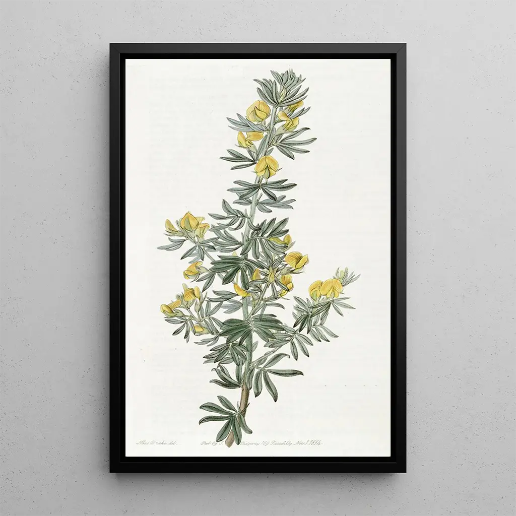 Adesmia de M. Loudon tarjoaa kiehtovan katsauksen eksoottisten kukkien kauneuteen. Keltaisen ja vihreän sävyillään tämä teos herättää keveyden ja arvokkuuden tunteen kasvien luonnollisessa elinympäristössä. Yksityiskohtien tarkkuus, joka on tyypillistä kasvi-illustraatioille, mahdollistaa herkkien terälehtien ja lehtien tekstuurin kokemisen. Tämä kangas kutsuu tarkkaavaiseen pohdintaan, paljastaen kasviston monimutkaisuuden ja loiston. Tämän teoksen tunnelma on sekä rauhoittava että inspiroiva, kuljettaen katsojan vehreään puutarhaan.