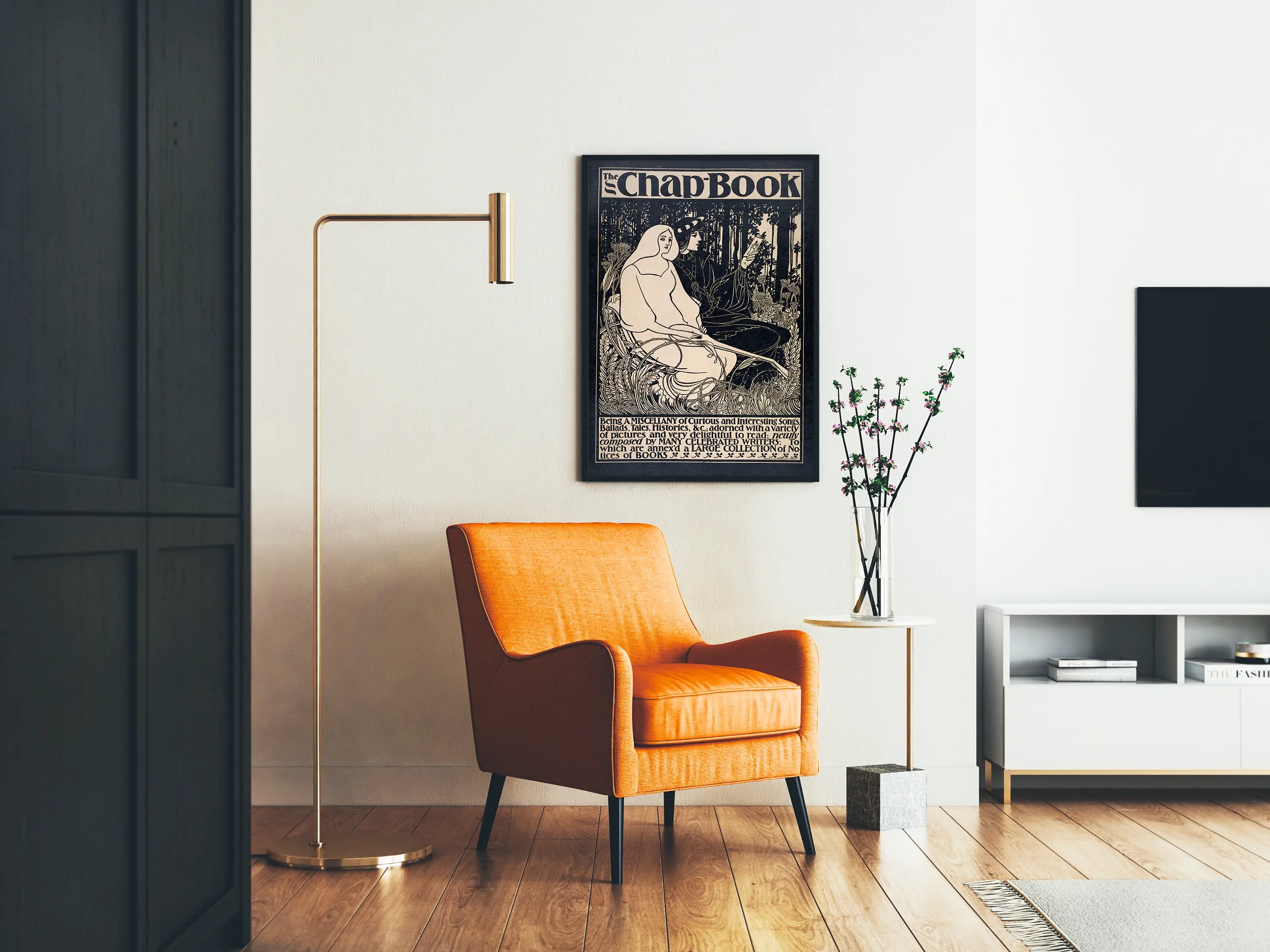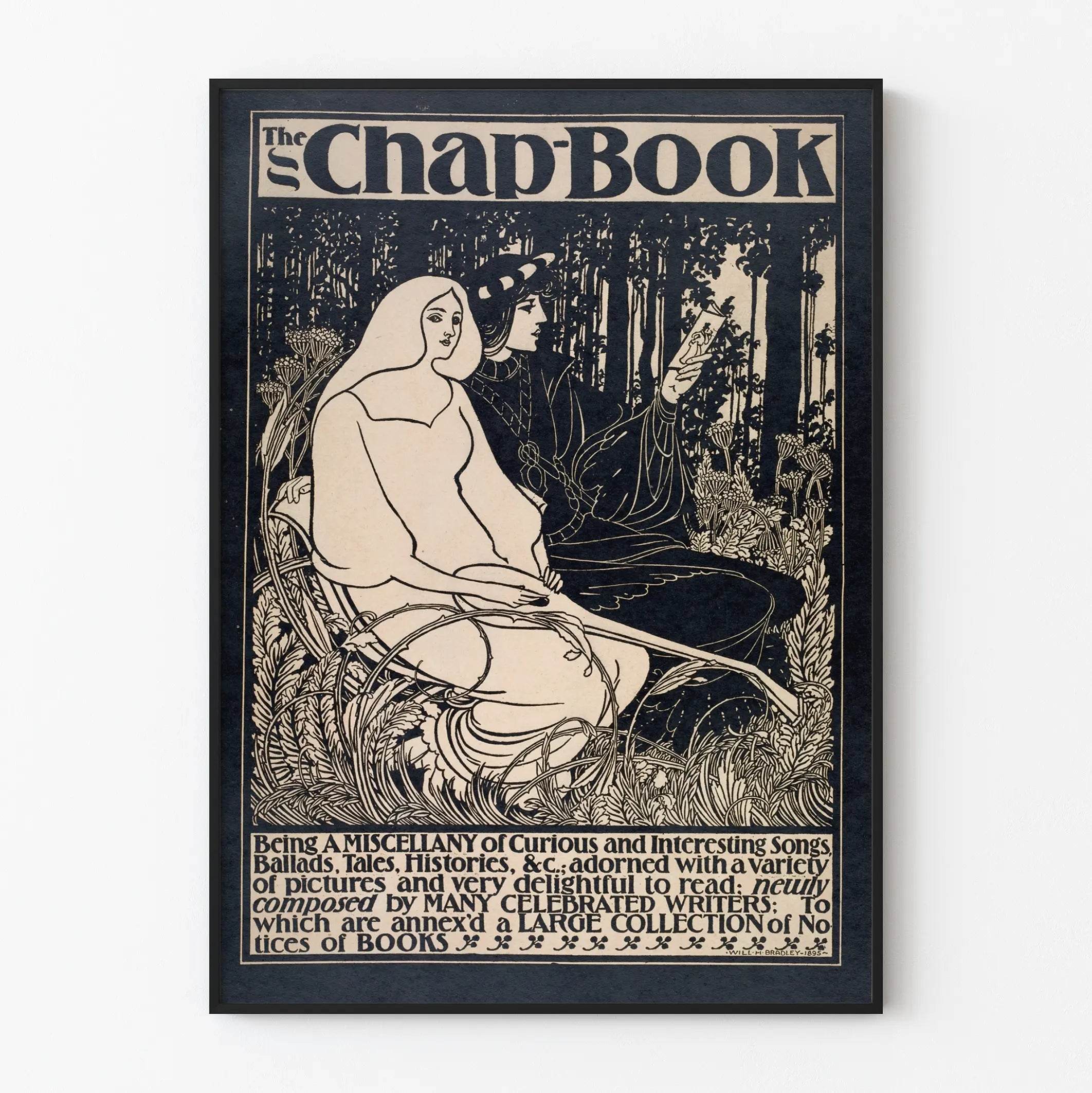 Tutustu tähän art nouveau -tyyliseen julisteeseen, joka on saanut inspiraationsa klassisesta ja vintage-tyylisestä kuvataiteesta. Tämä seinäkoriste esittää herkkää mustavalkoista kohtausta, jossa kaksi linjailtaan yksinkertaista ja eleganttia hahmoa istuvat luonnollisessa ympäristössä, joka on erittäin yksityiskohtainen. Hahmojen ympärillä olevat kasvit ja lehdet tuovat tähän julisteeseen orgaanisen ja lumoavan sävyn, tehden siitä täydellisen poetiikan ja nostalgiaa huokuvan tunnelman luomiseen. Yläosassa oleva teksti "The Chap Book" sekä alareunan merkinnät lisäävät aikakauden typografista charmia, mikä tekee siitä ihanteellisen retro- ja kirjallisuustyylisen seinäkoristeen ystäville. Tämä juliste on omalaatuinen valinta koristamaan seinäsi taiteellisella ja historiallisella vivahteella, erityisesti sisätiloissa, joissa suositaan vanhojen graafisten taiteiden inspiroimia sisustusratkaisuja. Tasapainoinen koostumus täytettyjen ja tyhjien tilojen välillä korostaa piirroksen hienostuneisuutta ja tarjoaa samalla vaikuttavan visuaalisen lopputuloksen. Olipa kyseessä olohuone, kirjasto tai toimisto, tämä vintage-juliste auttaa luomaan ainutlaatuisen ilmapiirin, jossa yhdistyvät nostalgia ja visuaalinen eleganssi. Se on suunniteltu graafisen suunnittelun, koristeellisen taiteen ja vanhojen mustavalkoisten julisteiden harrastajille. Lisää sisätiloihisi seinätaidetta, joka kertoo tarinan ja samalla korostaa makuasi yksinkertaisissa mutta hienostuneissa teoksissa.