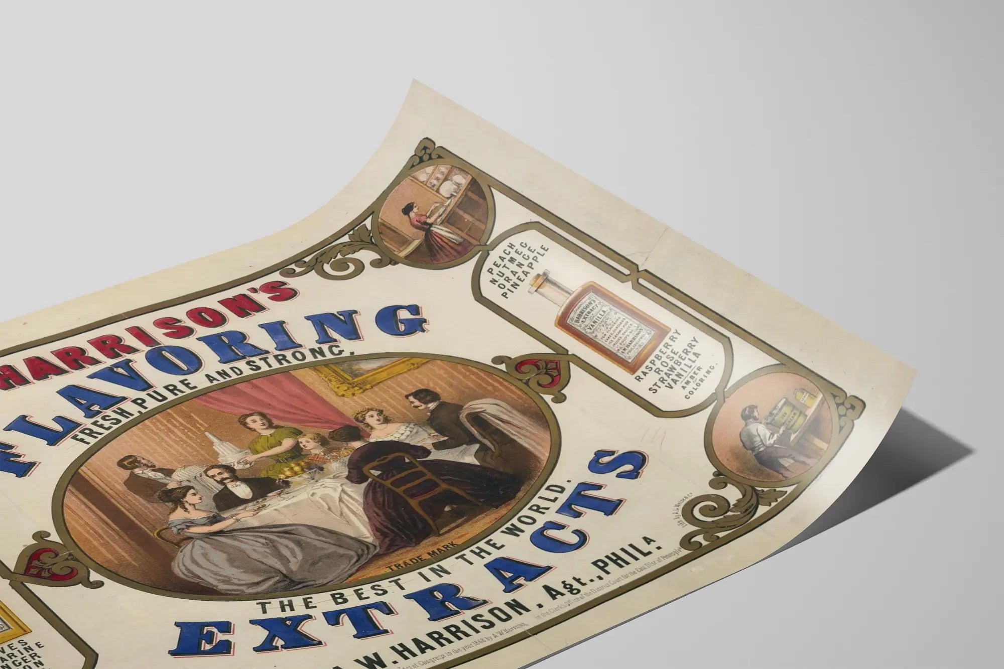 Affiche vintage Harrison's Flavoring Extracts Philadelphia